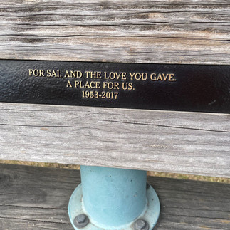 “The person paid for it and dedicated it to someone. Look, for example, at this bench. They are in so many places, usually by the water, wherever there is water, there’s a dedication to a spouse, a parent, or whoever it may be. So, I would love to track these places, these benches; see what they say, amazing, and sit on that bench. They usually place them in locations that were significant to the person who passed away and to whom it is dedicated. For example, there’s a beautiful one on a rock at the end of Jericho Beach, on the rock. I think they scattered the ashes too, sometimes they do that. Mayne they didn’t pay for that one because the rock was already there, but usually, they are benches. So, amazing! I mean, sitting in that place and marveling at what this person saw, why they chose that spot, and obviously keeping track of the texts on the benches because they are very inspiring. And well, seeing the years. On this plaque here, I assume it’s a spouse based on the years, It seems like someone older (1953-2017). ‘For Sai, and the love you gave. A place for us’.